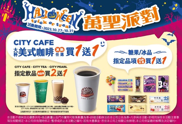 Halloween萬聖派對 CITY CAFE 糖果/冰品指頂品項優惠 等你來選購!