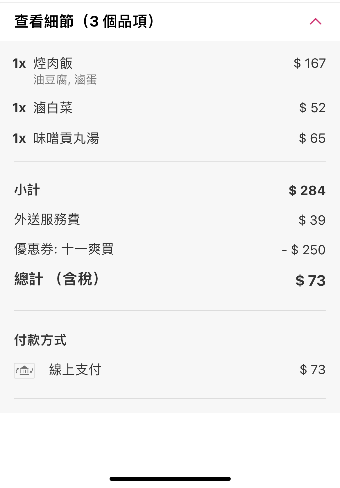 → puppu: 法確定究竟是否成功訂餐。後來是信用卡有綁 101.9.175.5 11/02 23:01