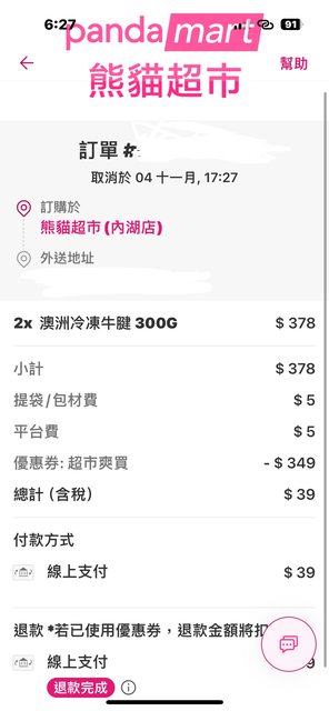 噓 iambubulin: 熊貓系統不給取消訂單,熊貓店家資訊 111.242.72.187 11/06 12:08