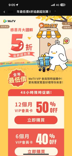 推 judd: wetv直接去淘寶買就好了,比這特價還便宜 27.53.99.66 11/08 16:05