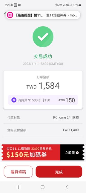 推 blackoctopus: 街口顯示交易成功但PCHOME顯示付款 111.71.85.133 11/11 22:15