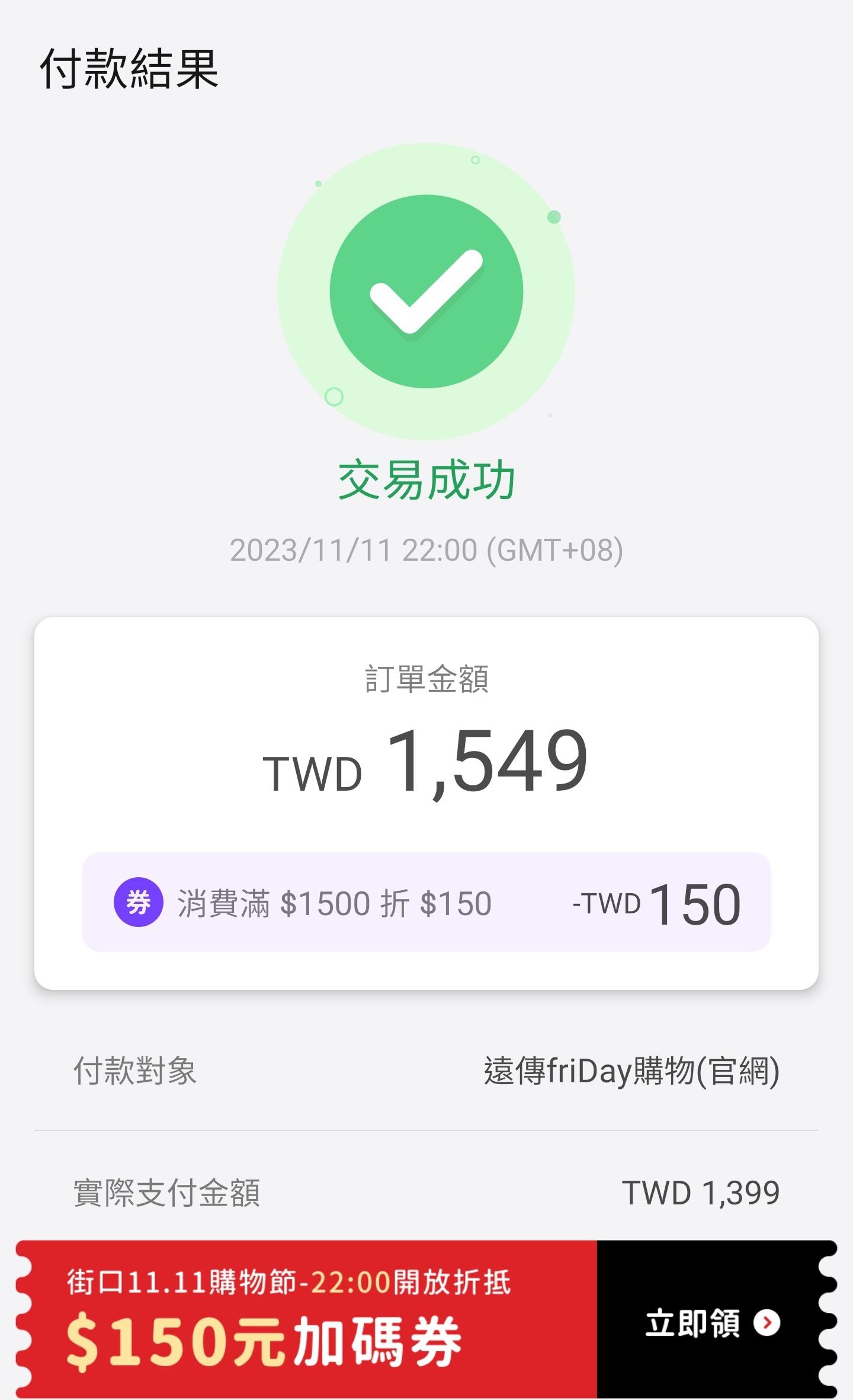 → newlife5566: 1500折150是22:00才開始 42.75.33.109 11/11 20:20
