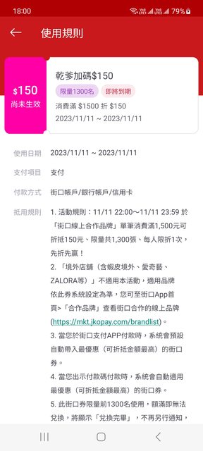 → ackes: 不是券 是街口幣 不怎麼樣的回饋額度 42.71.159.50 11/11 18:34