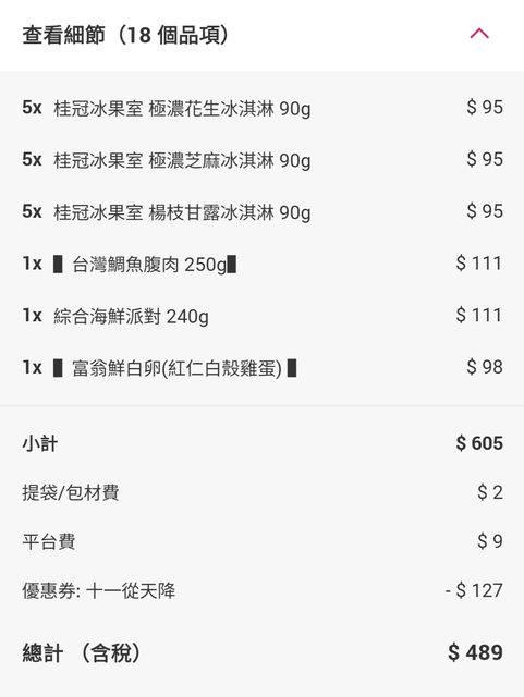 : 然後剛好看到有599打79折就隨便找別的東西湊了,他們有一區是特價111的生鮮