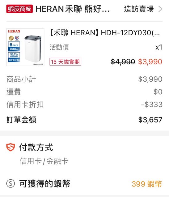 之前買過一次這台 小空間使用還不錯 看到王道折333 但王道卡有限量剛剛下單時還有 搭蝦幣回饋跟退貨物稅 這台不到3000可入手 https://i.imgur.com/YndFaxj.jpg