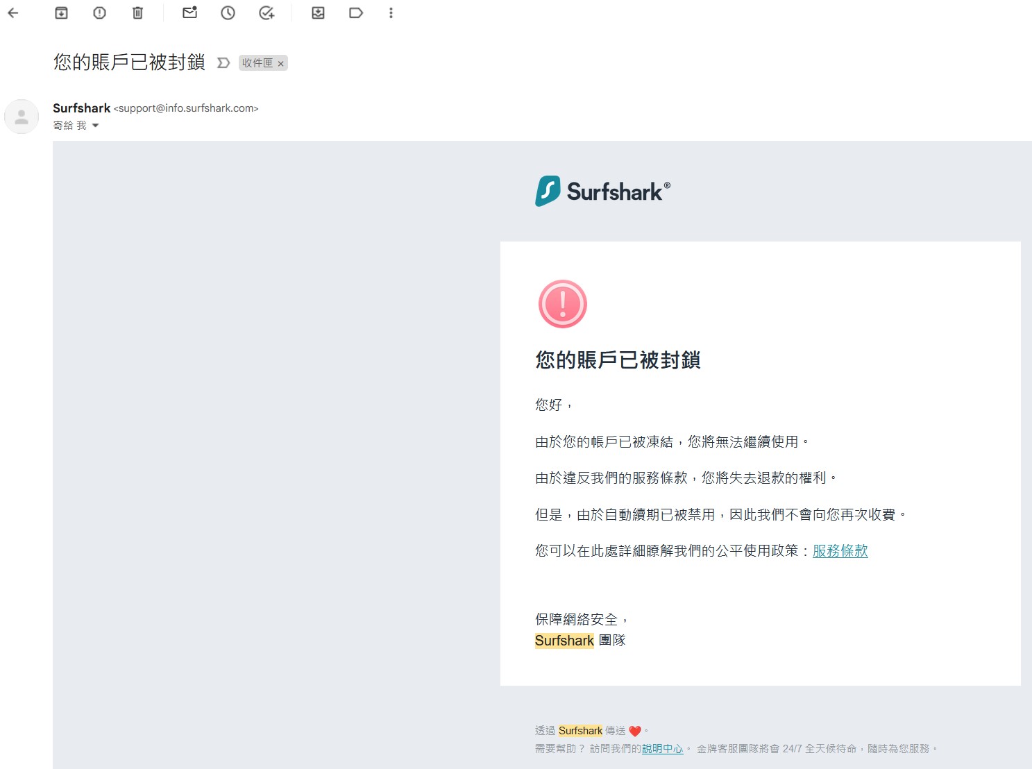 推 hsen: 今天上午10點多刷surfshark 剛剛收到回饋通 1.160.101.180 11/24 16:05