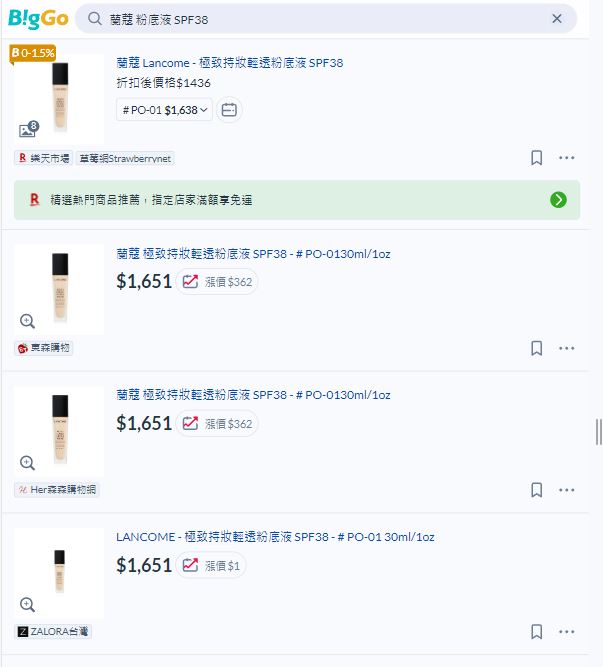 標題[情報] 蘭蔻 粉底液 SPF38 $1366,再領點10%