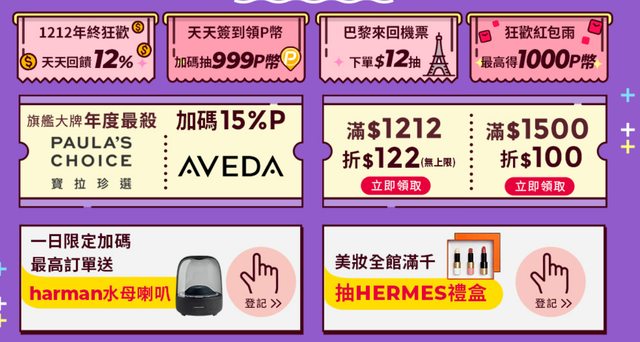 3、美妝全館滿1212折122