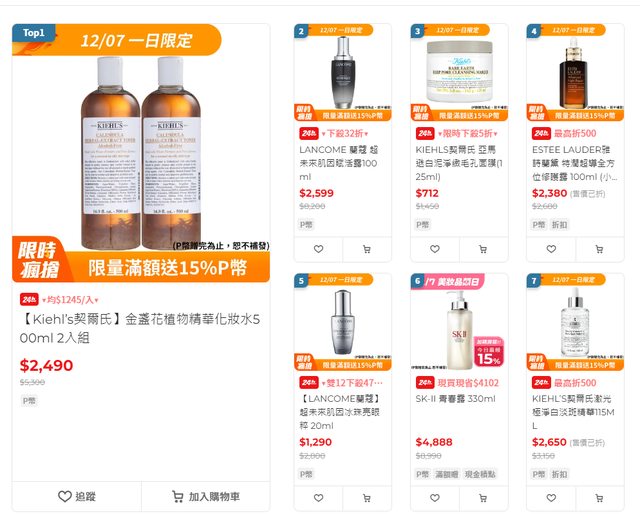 1、美妝一日加碼回饋15%P幣