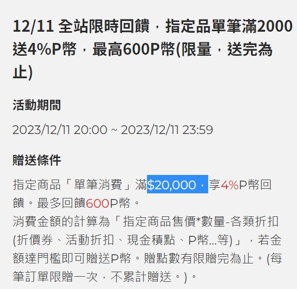 → ackes: 可是回饋會扣掉p幣直接扣抵的金額 包含門檻 42.71.229.26 12/11 12:51