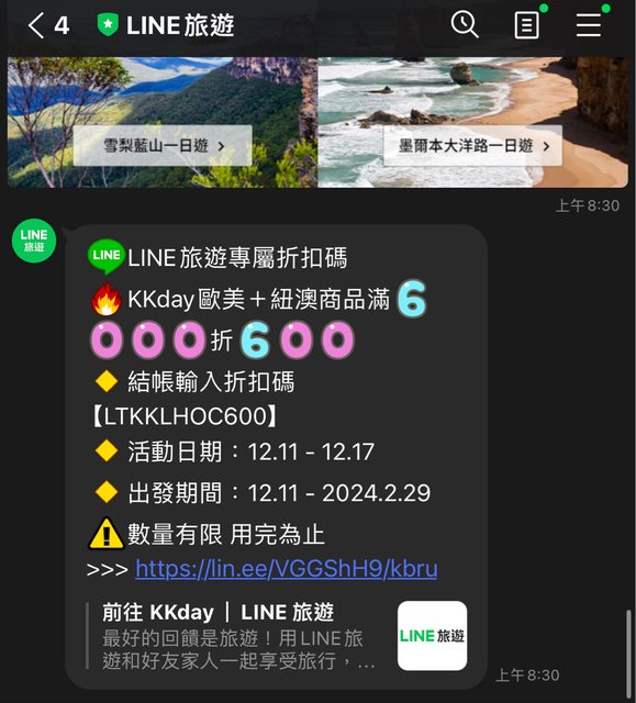 即日起到12/17為止,使用line旅遊導購到kkday購買歐美或紐澳商品