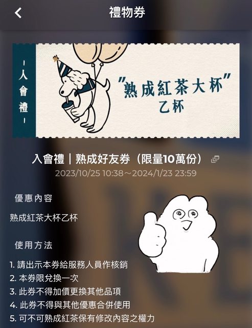 推 nelson7061: 中午去換熟成紅茶還有 111.255.6.229 01/20 18:56