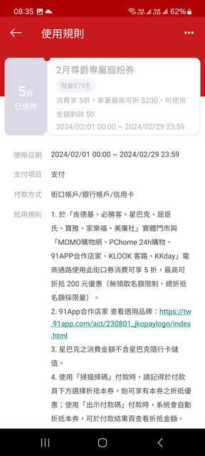 推 TETUO: 上個月才發現尊爵券有限量,凌晨就先用了XD 114.27.170.22 02/01 10:27