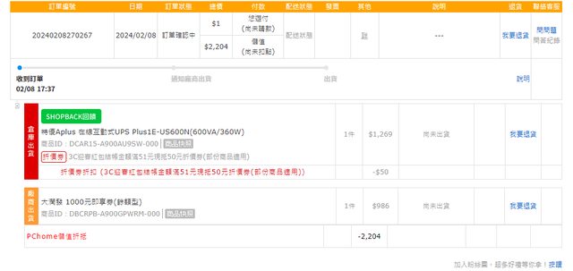 → Ultramarine: ,剛看不見了,訂單有追蹤成功,不過 150.116.162.57 02/08 23:50