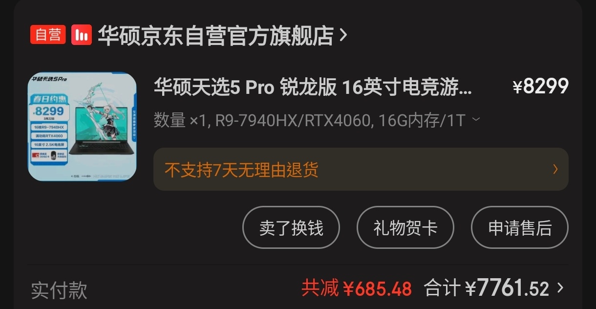 → mnxzq: 好的 我買華碩天選 27.242.192.203 03/22 23:51