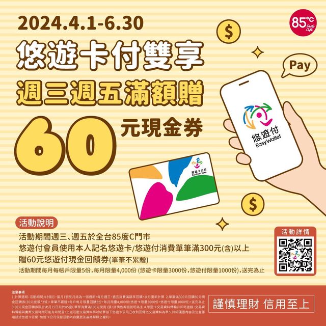 2.每月限量悠遊卡3000份、悠遊付1000份,送完為止