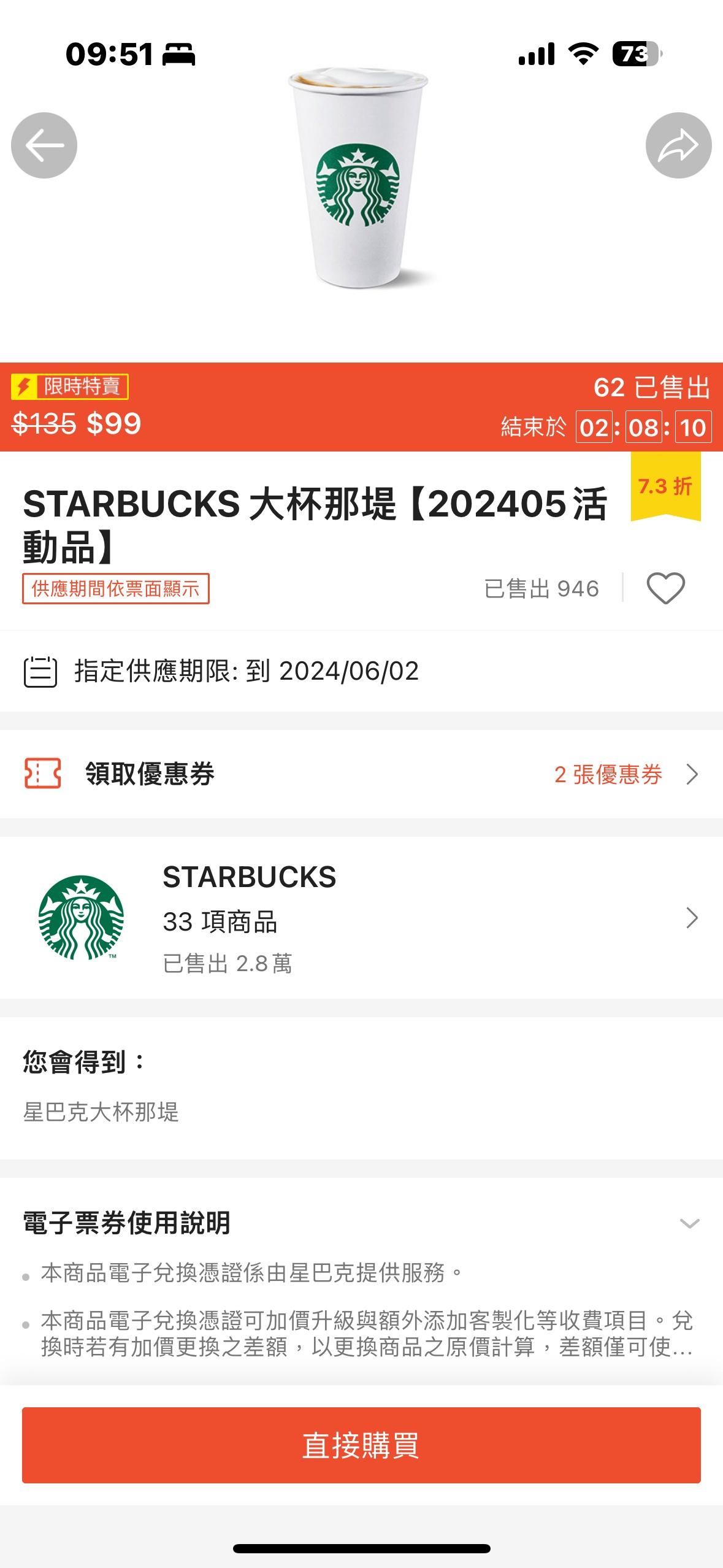 → bailan: 星巴克那提大杯99今天蝦皮就有啊,不過效 223.138.15.43 05/03 12:13