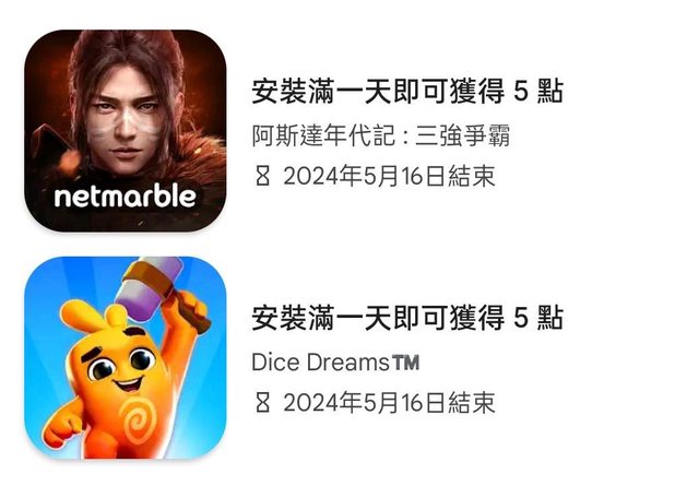皆安裝滿一天可獲得 5 點