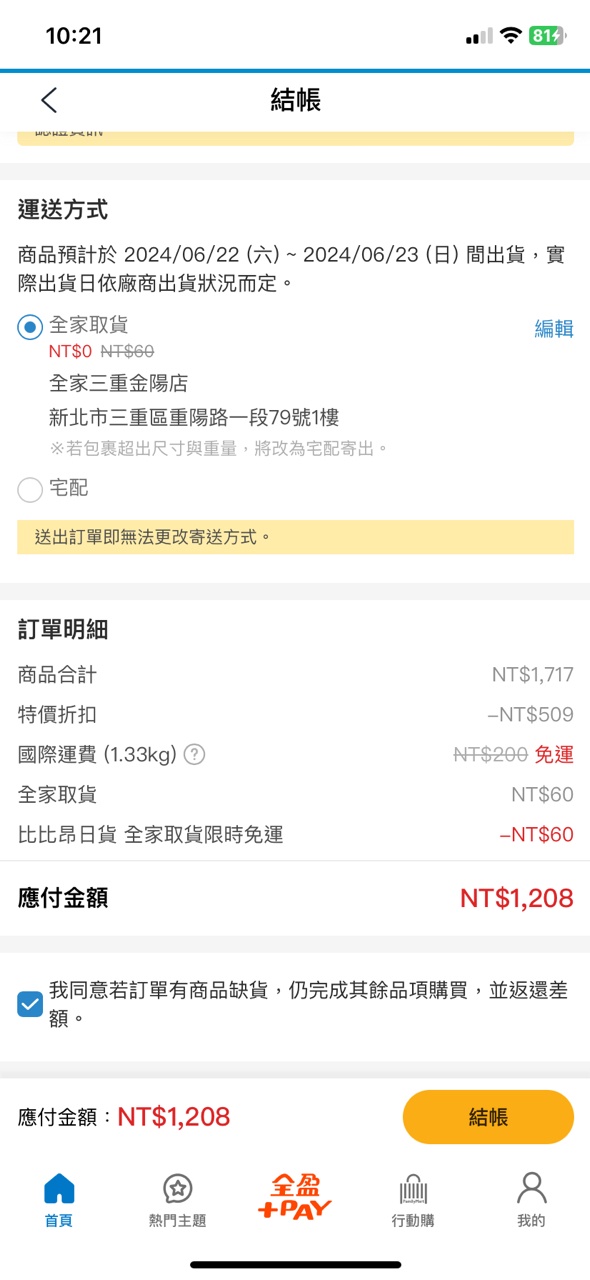 推 newlife5566: 我的結帳頁面長這樣。請問S大有另開 118.160.96.173 06/19 10:22