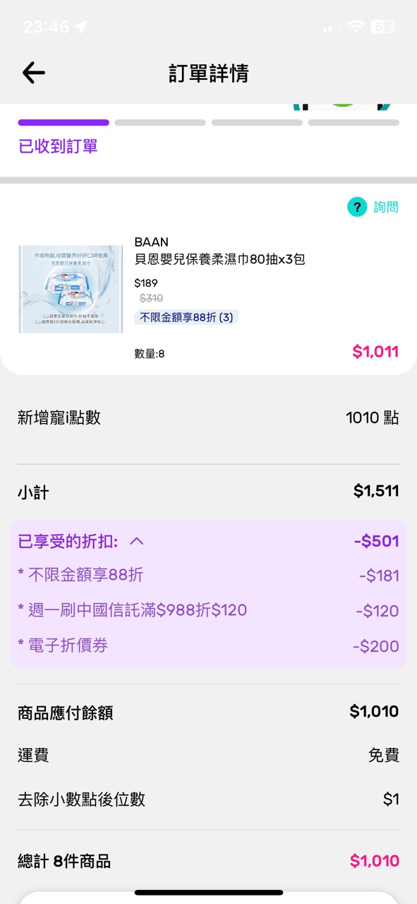→ wanju007: 屈臣氏今天88折+中信卡+全站電子折價券$39.9.73.228 09/02 08:42