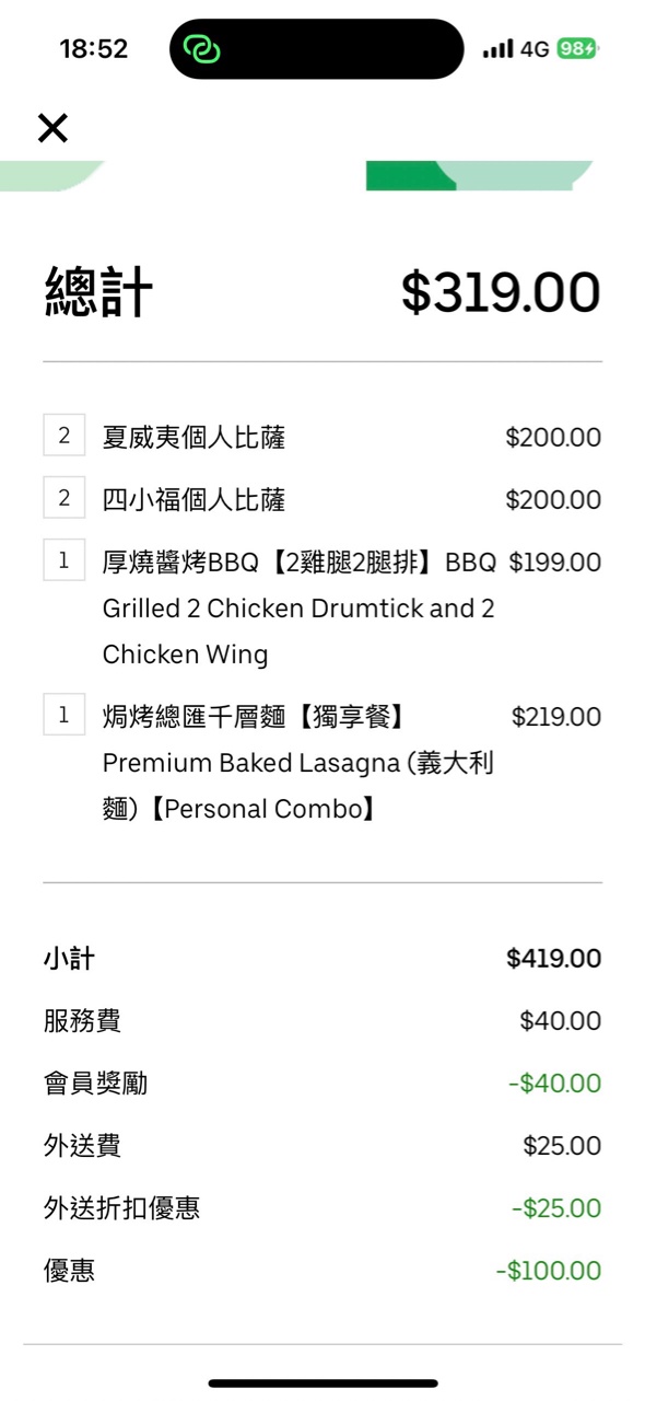 推 birdq: 謝謝分享 點了4小披薩 1筆管麵 送雞 剛好223.137.223.180 09/11 17:59