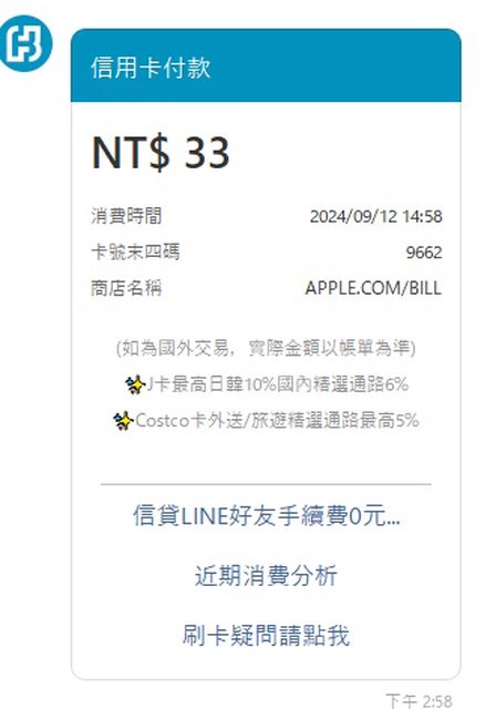 → zxc654033: 消費,他通常會延遲幾天出帳後才扣款 49.217.57.148 09/12 17:17