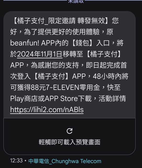 推 labaw: 收到簡訊但登入後沒看到88元27.240.163.87 09/18 18:35