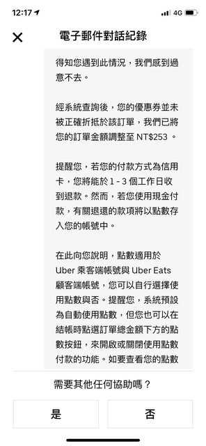 : 對於Uber eats如果你嫌麻煩就真的只能不要用,因為他們系統的問題真的有夠多的,然