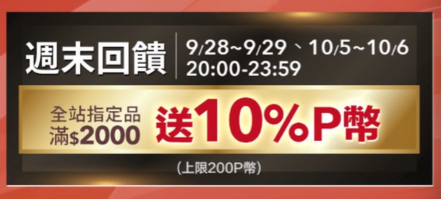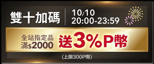 全站指定品滿2000送3%P幣(上限300P)