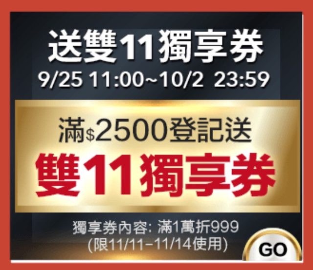 9/25 11:00 ~ 10/2 23:59消費滿2500即可登記送