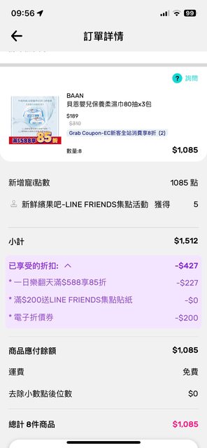 剛好屈臣氏滿588打85折再加上首購8折就