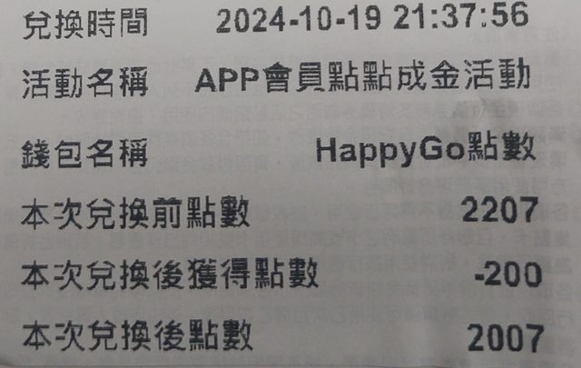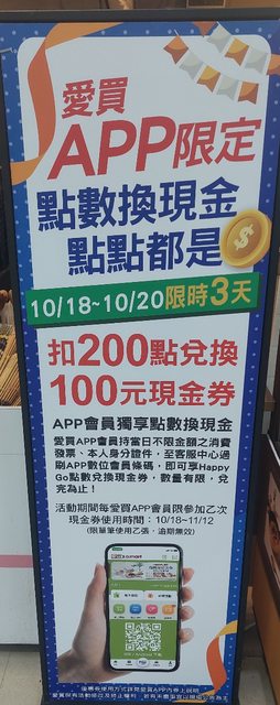 : 消費一次憑發票可200happygo點數兌換100折價券,需愛買app會員