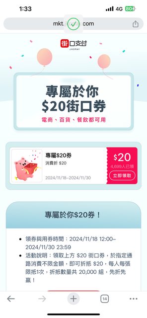 推 sh093655: 有領到,感謝分享220.228.152.197 11/19 12:36