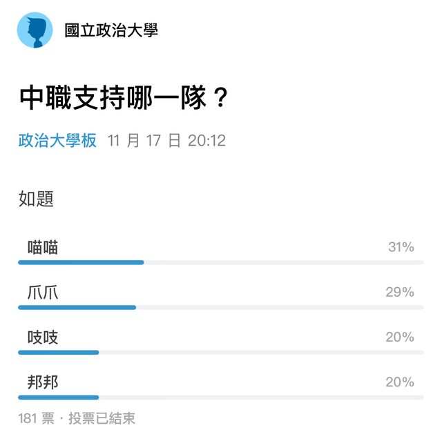 推 JimK0511: 181票…沒啥參考性 11/30 15:42