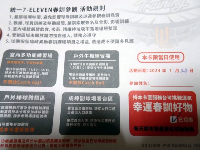 如果不想看春訓可以用這張卡在戶外打擊守備區玩整天也不錯XD