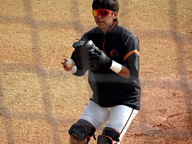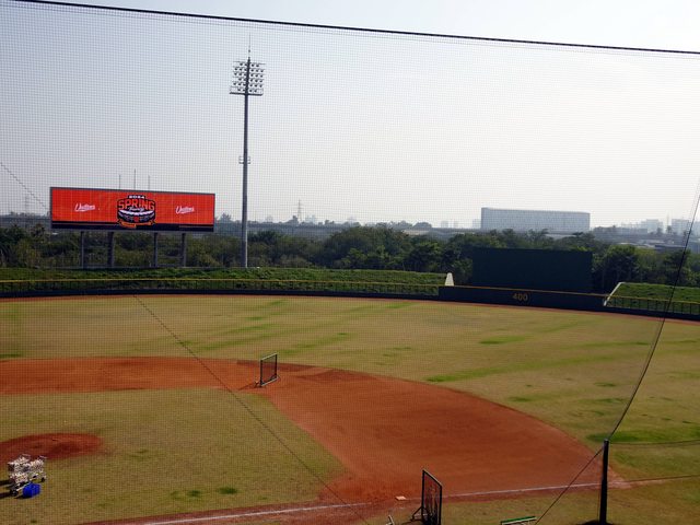 可惜捕手練習棚有點遠,沒辦法像去年春訓近距離觀看