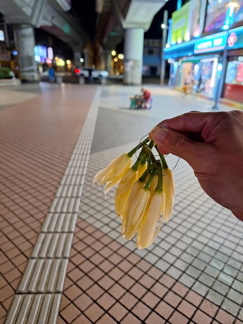 看到賣玉蘭花的婆婆十點還沒賣完