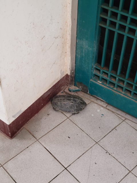 在外野下層的通道看到了烏龜