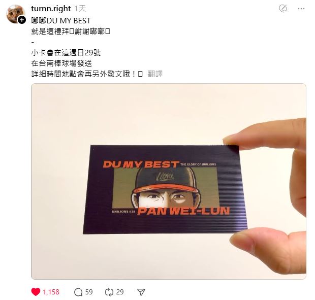 → yijmeow: 紙,沒有脆帳號的話可以看ig 帳號yij.baseball.meow,明 09/28 01:39