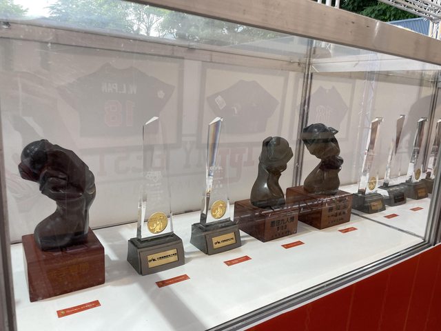 場外有嘟嘟的小展覽,擺放嘟嘟的球衣、報導、獎座和手套。