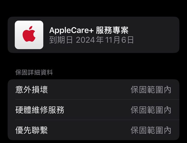 [保固] apple care+ 至(2024/11/06)