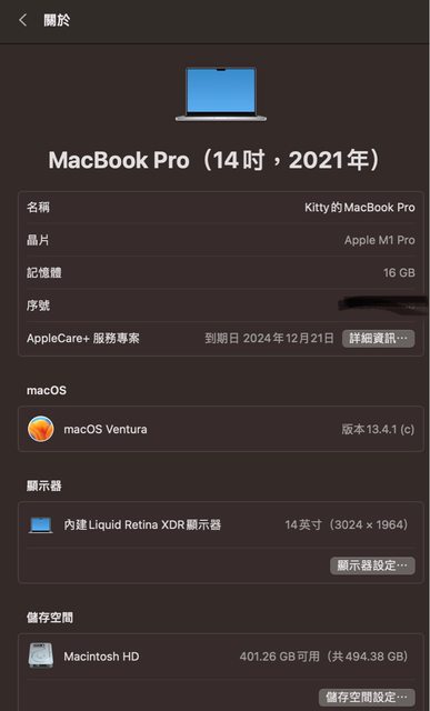 標題[販售] MacBook Pro 14 M1 Pro 16/512