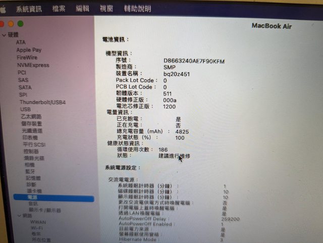電池循環186次(無插電約可用2小時)