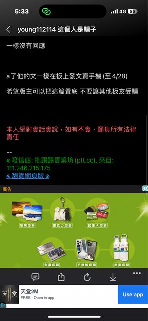 補充我搜尋到的板友發表的詐騙文截圖