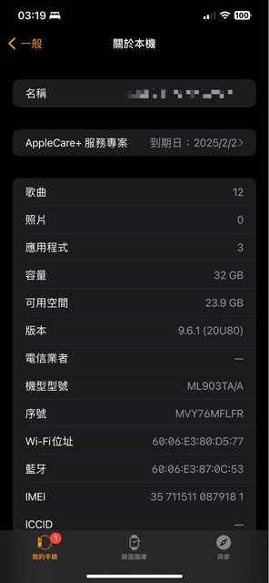[保固] 2025/2/2(當初有購買AppleCare+)