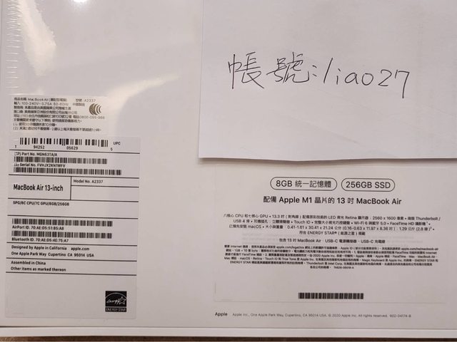 標題台中 全新 MacBook Air 13吋 M1 256G 8G