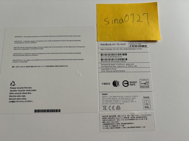 [型號] Macbook Air 15吋 M3 (A3114)