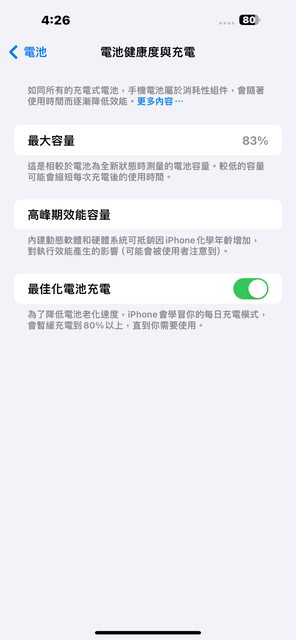 僅正常使用痕跡。電池健康度83%。