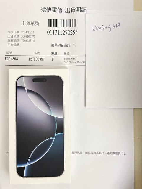 標題[販售] 雙北 iPhone 16 Pro 256G 白