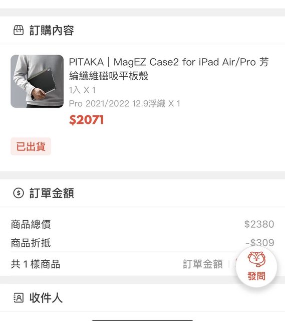 附贈: Hoda AR抗反射滿版玻璃保護貼/PITAKA 綸纖維磁吸平板殼/鏡頭藍寶石貼